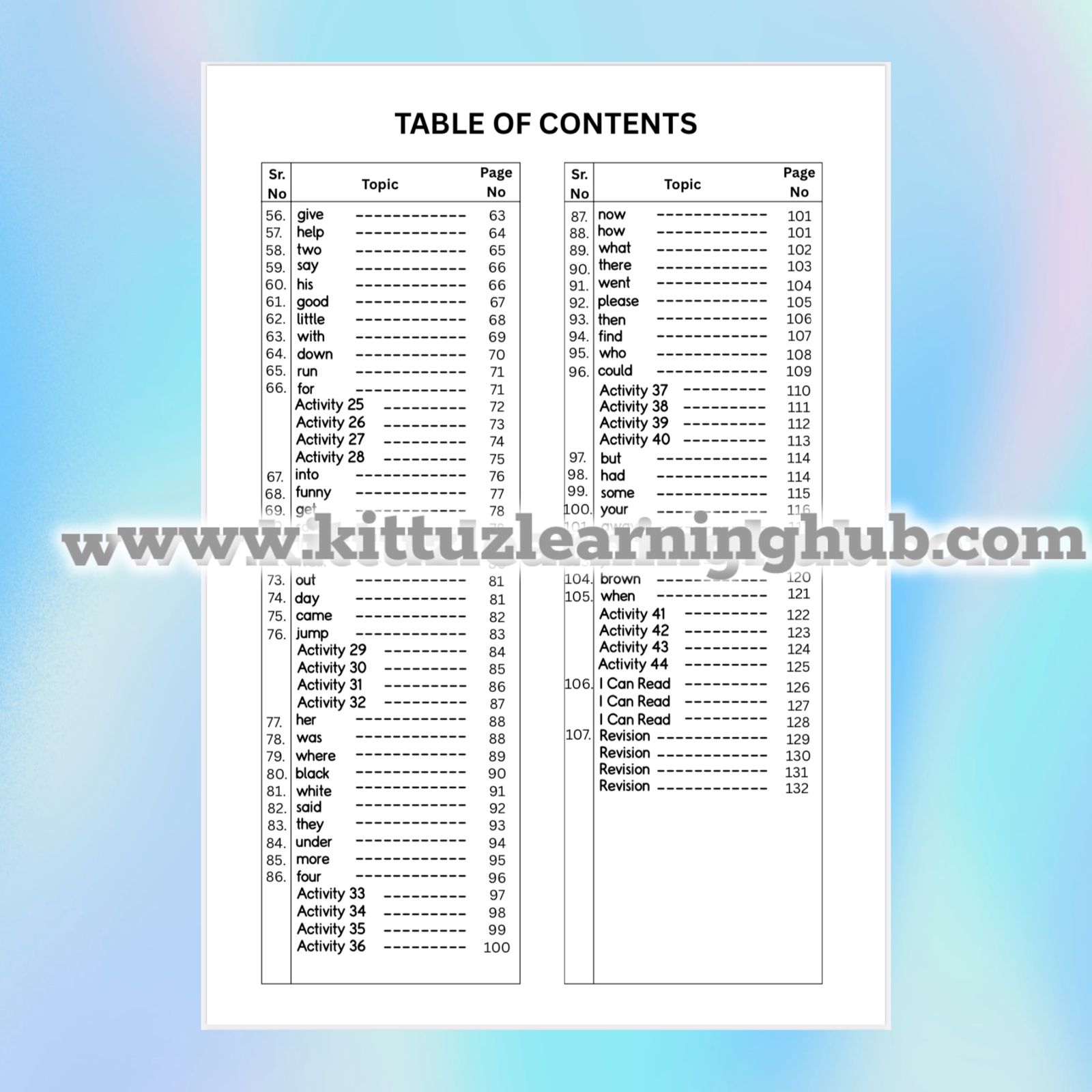 Build your child’s reading fluency with this 132+ page Sight Words Level-2 Worksheet Bundle covering 56–105 sight words. Includes trace, write, read, build, colour, sentences, revision sheets, and fun activities—perfect for Nursery, LKG, UKG & Kindergarten.