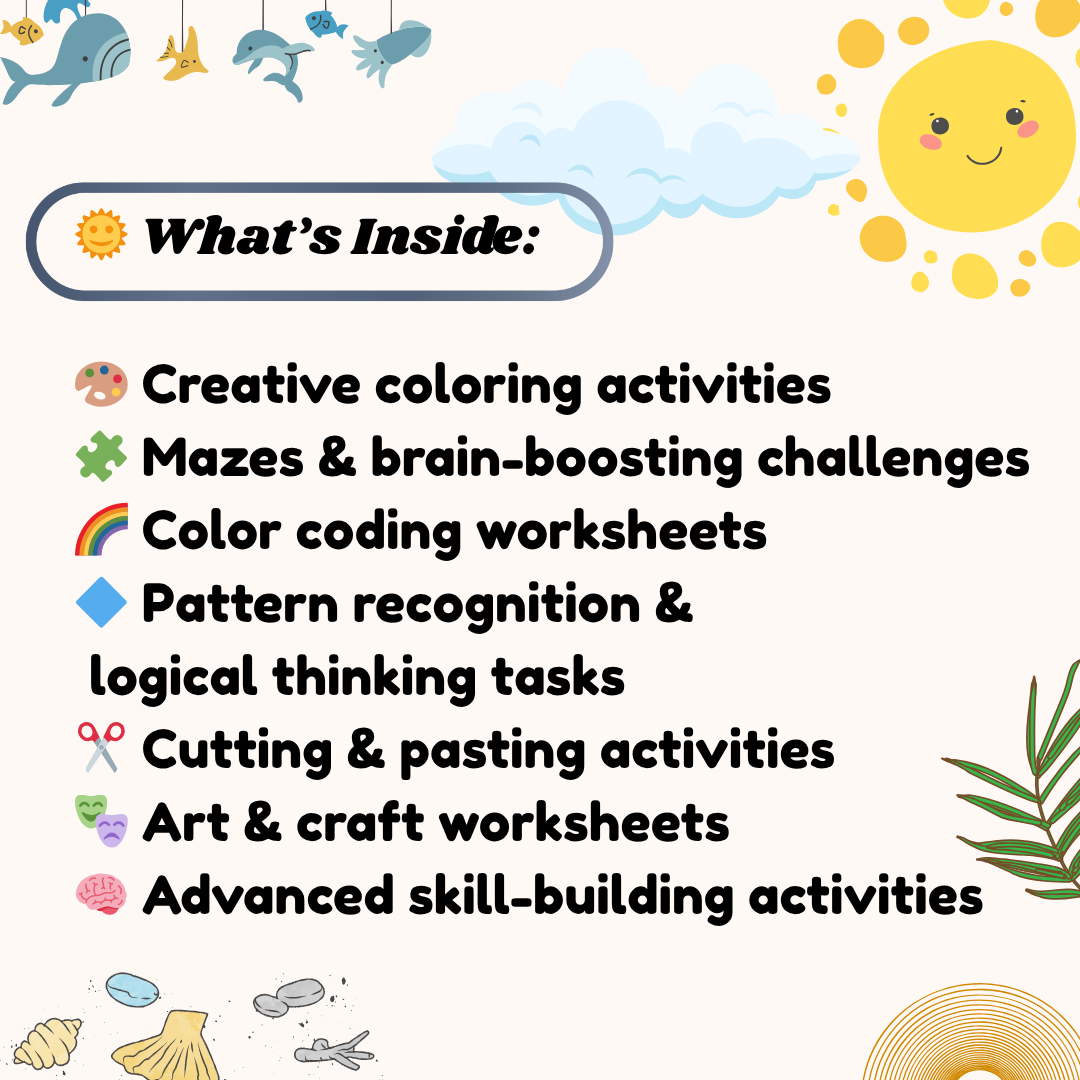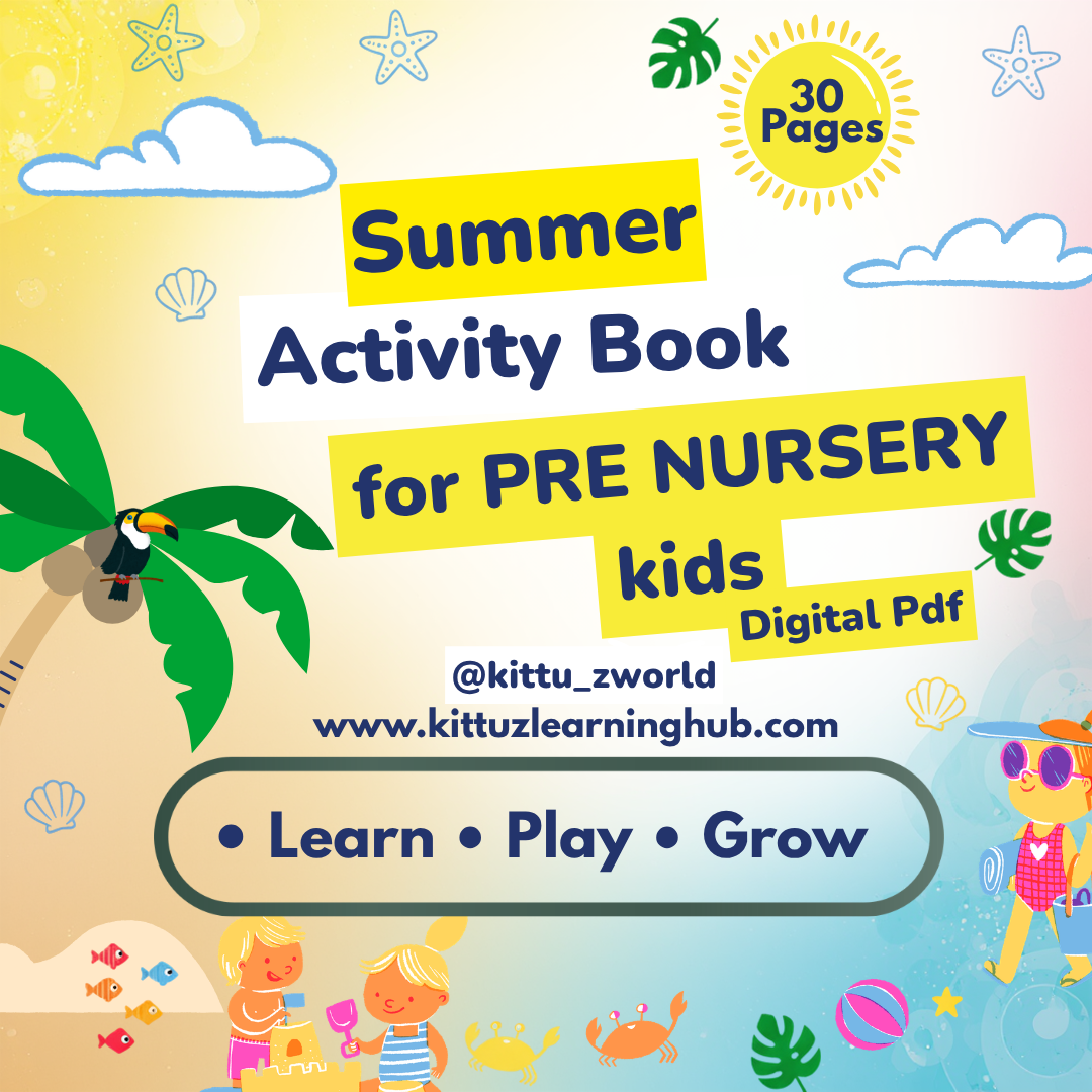 Keep your little one happily engaged this summer with our Summer Activity Book for Pre-Nursery Kids, specially designed for ages 2–4 years. This 30-page printable PDF is filled with fun, hands-on activities that support early learning in a playful way.