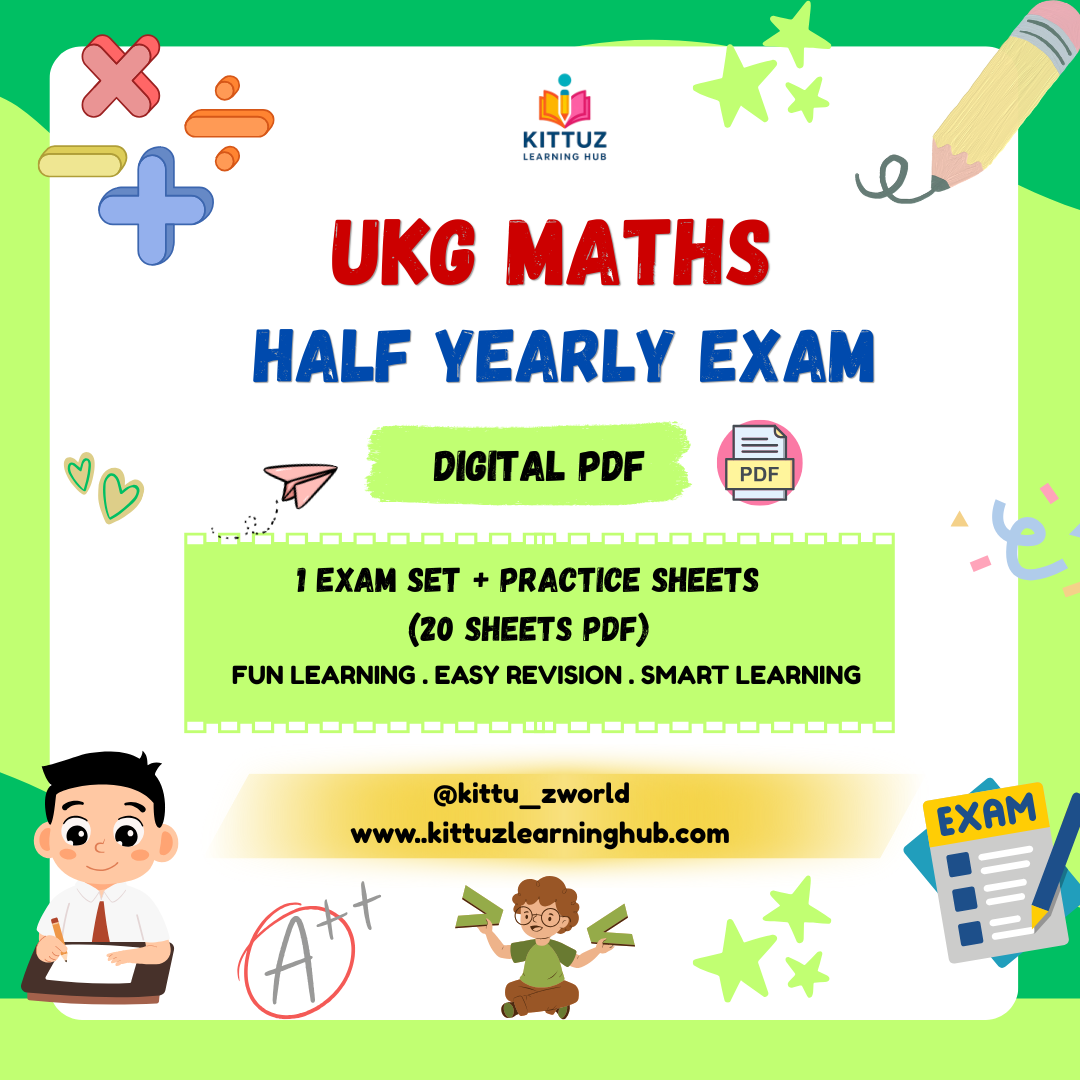 Help your child build strong maths fundamentals with our UKG Maths Half Yearly Exam PDF Pack. This digital bundle includes 1 complete exam set + 20 practice worksheets, crafted to make number learning easy, engaging, and effective for young learners.